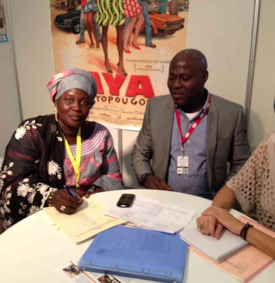 Photo : Nana Kadidia Toumagnon, productrice de la série « Les Rois de Ségou » et Segun Osinuga, Acquisitions Manager M-Net Africa signent la vente historique de la série « Les Rois de Ségou » à l’occasion du DISCOP 2013.
