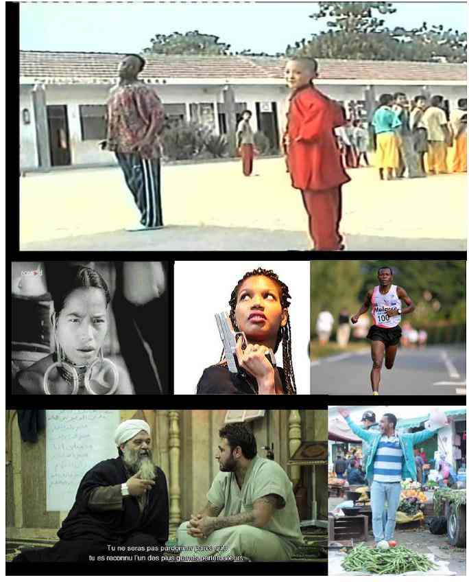 Montage photos : "L'Africain qui voulait voler" de Samantha Biffot, "Cochinchine" de Rithy Panh, "La gendarme enquête" de Guy Foumane, "Marathon" de Clarisse Muvuba, "Les royaumes d'Ibrahim" de Remi Itani et "Une place sous le soleil" de Karim Aïtouna.