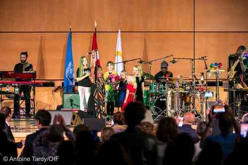 Perpétuant une tradition devenue désormais incontournable, le grand concert de la francophonie cette année a rendu un hommage au combat que mènent les femmes pour une reconnaissance de leurs droits. Elles se sont faites entendre dans la salle des Assemblées de l'Office des Nations Unies à Genève de belles et fortes voix de femmes à travers les prestations époustouflantes des chanteuses Souad Massi (Algérie) et Fatoumata Diawara (Mali), ainsi que du collectif de slameuses les "Belles personnes". Après l'émouvante prestation de Charles Aznavour l'année dernière, la salle des Assemblées de l'ONU, habituellement réservée aux rencontres formelles, a vibré au rythme des chants et des danses d'environ 1500 invités au cours de cette soirée festive clôturant un "Printemps de la Francophonie" réussi à Genève. Rassemblant un public qui reflète la diversité de la Ville de Genève et de ses environs (Diplomates, agents internationaux, étudiants, acteurs culturels), le Grand concert de la Francophonie a une nouvelle fois marqué les esprits et sa prochaine édition qui célébrera le cinquantenaire de l'OIF en 2020 est déjà très attendue.