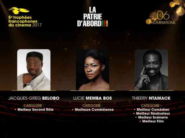 Le Cameroun est dans la course avec un documentaire Djambar, Sembène l'insoumis d'Eric Bodoulé Sosso, Les Murs (Walls) de Narcisse Wandji, meilleur court métrage aux Ecrans noirs 2016. Il y a également La Patrie d'abord !!! de Thierry Ntamack qui a reçu six nominations : Meilleur réalisateur, Meilleur scénario, Meilleur long métrage fiction, Meilleure interprétation féminine (pour Lucie Memba Bos), l'interprétation masculine avec Thierry Ntamack et le second rôle masculin incarné par Jacques-Greg Belobo. Ce long métrage fiction long métrage, avec 6 nominations, narre la tragédie que vit le Commandant Arthur Ngando (Thierry Ntamack) : alors qu'il a de la peine à étouffer les braises qui soufflent dans son propre foyer, il se voit confier la lourde tâche d'aller avec son bataillon éteindre le feu qui menace à la frontière du Cameroun.