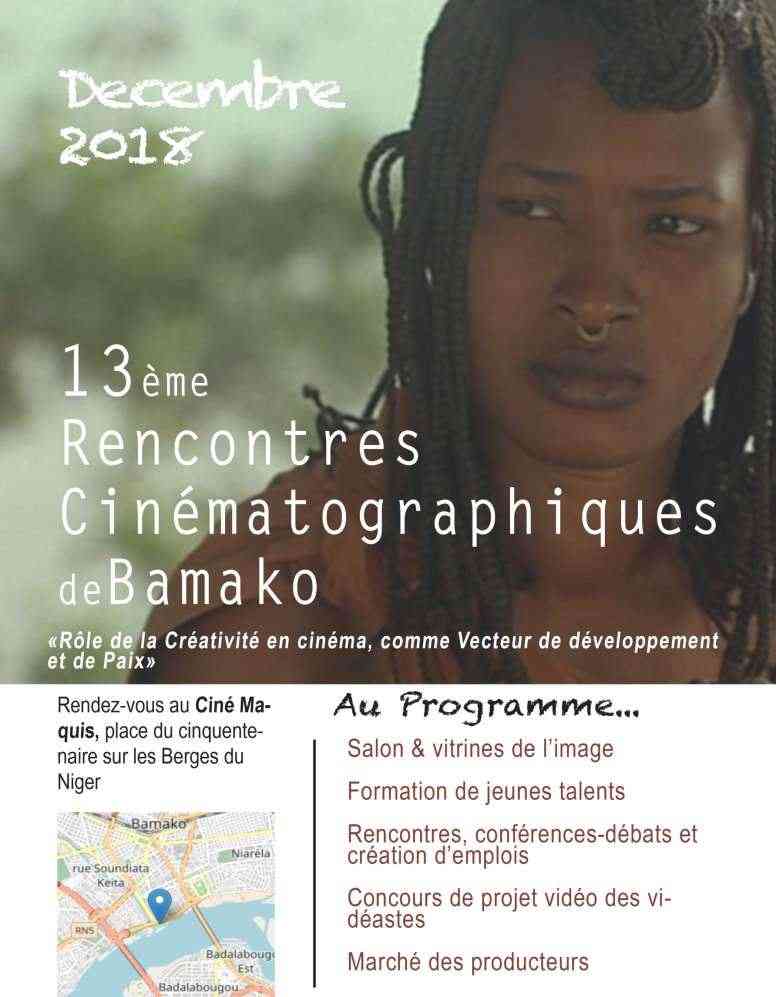La 13ème édition des Rencontres Cinématographiques de Bamako (RCB) aura lieu en décembre 2018, durant trois jours. Pour les festivaliers, les Rencontres sont un rendez-vous à la fois citoyen et distrayant, pour tout âge, avec les stars des cinémas africains.