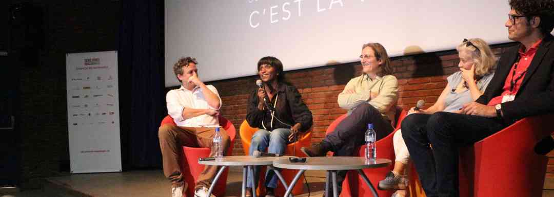 Photo : Marguerite Abouet au micro lors de l’édition 2018 de Séries Series, à Ouagadougou