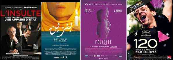 7 des 24 films nommés ont été soutenus par l'OIF. Félicité et L'insulte sont nommés six fois. 120 battements par minute, cinq fois et Benzine, quatre fois.