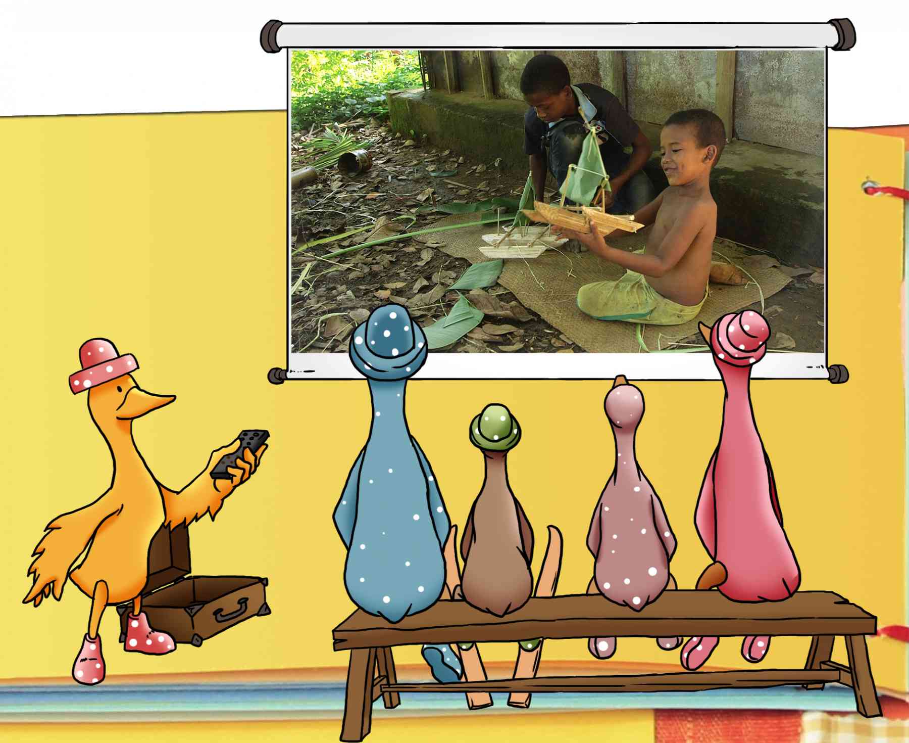 Kenji et son grand-frère habitent avec leur maman qui fait de la vannerie dans la forêt de la côte Est de Madagascar. Ils font découvrir à Romy, un petit canard animé, comment on construit une pirogue à balancier en raphia. Un film de Nantenaina Lova Madagascar, 2017, court-métrage, 18 mins court-métrage lié au projet "A toi de jouer" réalisé par Nantenaina Lova Productrice : Eva Lova.