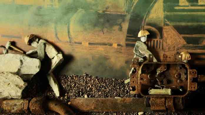 ouvert. Petit à petit, une masse verte sortant de l'usine se propage dans l'air, dans la rivière, dans la cité. Elle contamine tout sur son passage. Les ouvriers, les creuseurs et les habitants toussent et sont réduits en morceaux. Les cailloux sont à terre. Une tractopelle les ramasse et les charge dans un camion tels des minerais…