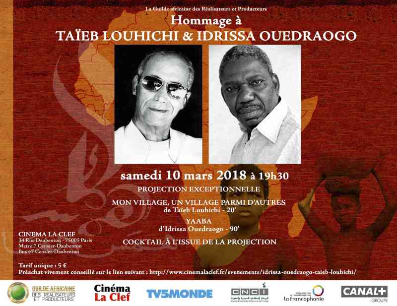 Hommage aux regrettés Idrissa Ouédraogo, Taïeb Louhichi et Bouna Médoune Sèye, le samedi 10 mars 2018, à Paris